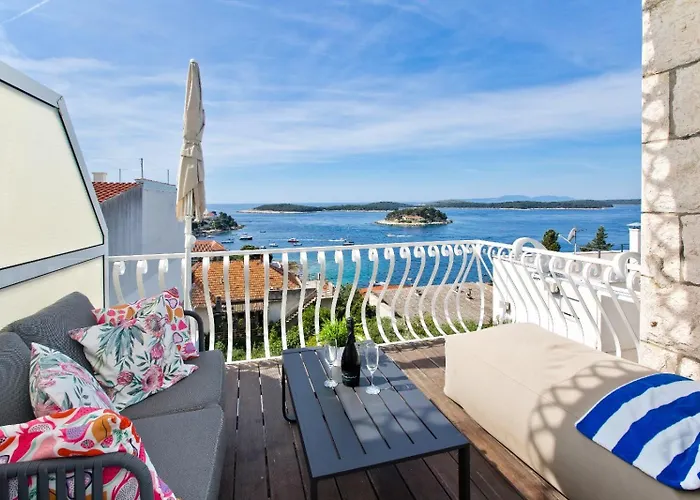 Pour profiter de vos vacances à Hvar Town, séjournez à Rooms Carpe Diem Hvar Hvar Town, qui se trouve à seulement 300 m du Port d'Hvar et à moins de 7 minutes de marche de la Cathédrale Saint-Étienne. Il y a un balcon meublé avec vue sur la mer dans l'appartement.